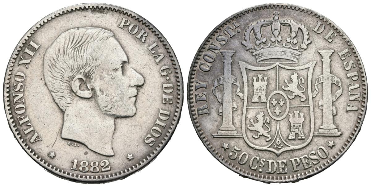 ALFONSO XII (1874-1885). 50 centavos. (Ar. 12,66g/30mm). 1882/1. Manila. (Cal-2019-117). MBC.