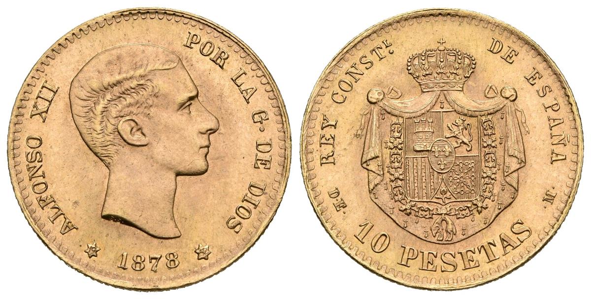 ALFONSO XII (1874-1885). 10 Pesetas. (Au. 3,25g /19mm). 1878 *19-62. Madrid DEM. (Cal-2019-168). Reacuñación del Estado Español. EBC.
