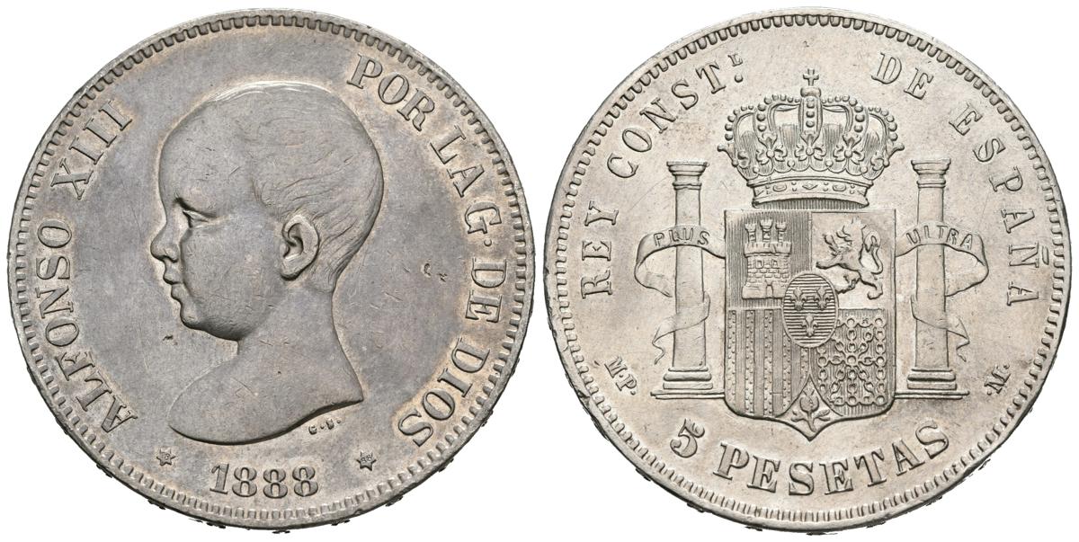 ALFONSO XIII (1885-1931). 5 Pesetas. (Ar. 25,00g /37mm). 1888 *18-88. Madrid MPM. (Cal-2019-92). EBC-.