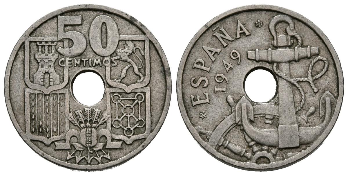 ESTADO ESPAÑOL. 50 Céntimos. (CuNi. 3,72g/20mm). 1949 *19-51. Madrid. (Cal-2019-21). Variante: Flechas invertidas. MBC+.