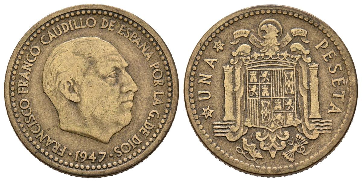 ESTADO ESPAÑOL (1936-1975). 1 Peseta (Ni. 3,51g/20mm). 1947. *50. Madrid. (Cal-2019-50). MBC.