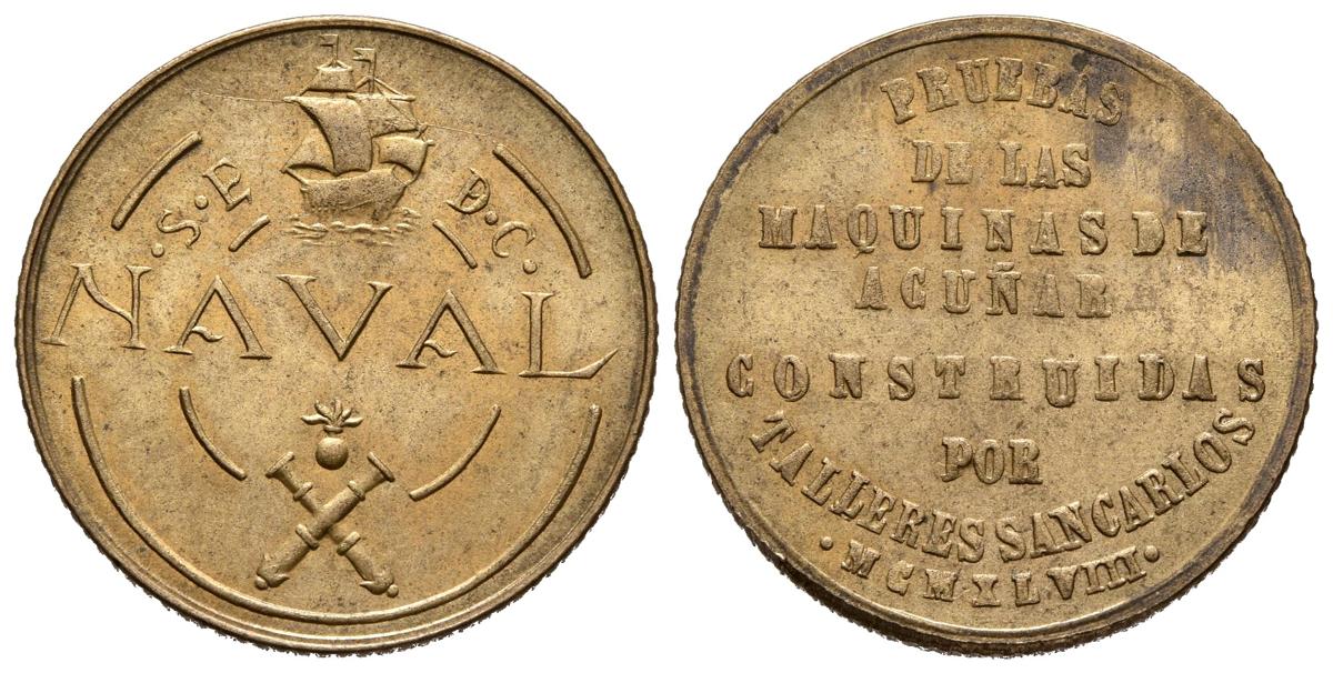 ESTADO ESPAÑOL. (1936-1975). 1 Peseta. Prueba. (Ae. 3,41g/21mm). 1948. Talleres San Carlos, Cádiz. (Cal-Falta). EBC+.