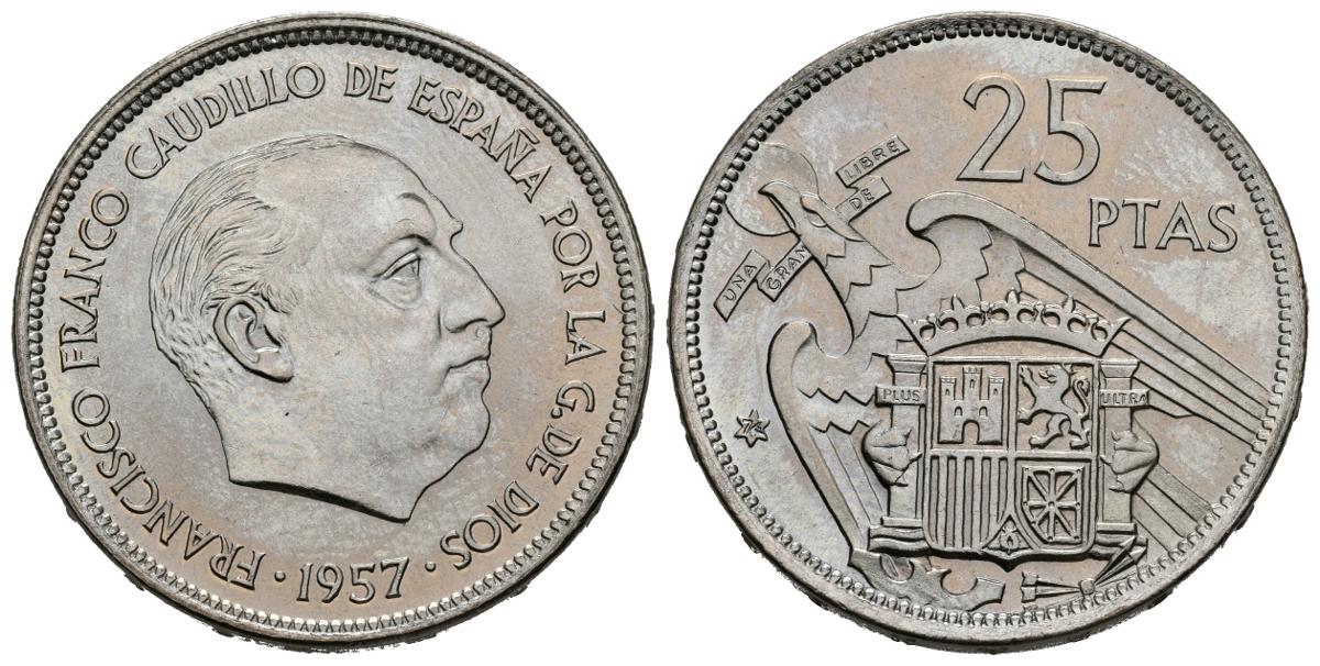 ESTADO ESPAÑOL (1936-1975). 25 Pesetas (Ni. 8,37g/27mm). 1957. *74. Madrid. (Cal-2019-129). SC. Precioso brillo.