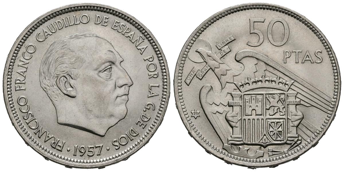 ESTADO ESPAÑOL (1936-1975). 50 Pesetas (Ni. 12,50g/30mm). 1957. *71. Madrid. (Cal-2019-140). SC. Preciosa pátina.