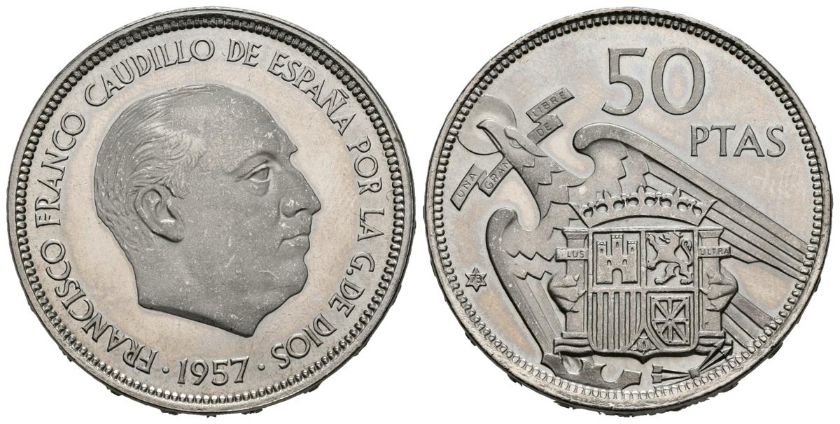 ESTADO ESPAÑOL (1936-1975). 50 Pesetas (Ni. 12.46g/30mm). 1957. *73. Madrid. SC. Procedente de cartera de la FNMT.