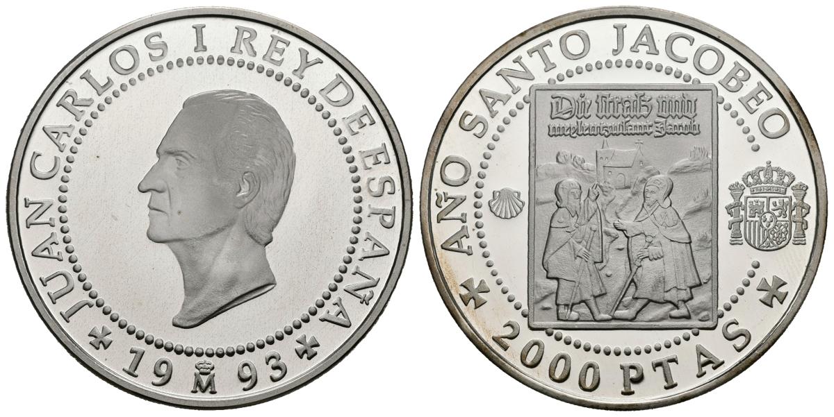 CONTEMPORANEO. 2000 Pesetas (Ar. 27,00g/40mm). 1993. Año Santo Jacobeo. Peregrinos alemanes. (Km#925). Proof. Incluye estuche original y certificado de autenticidad.