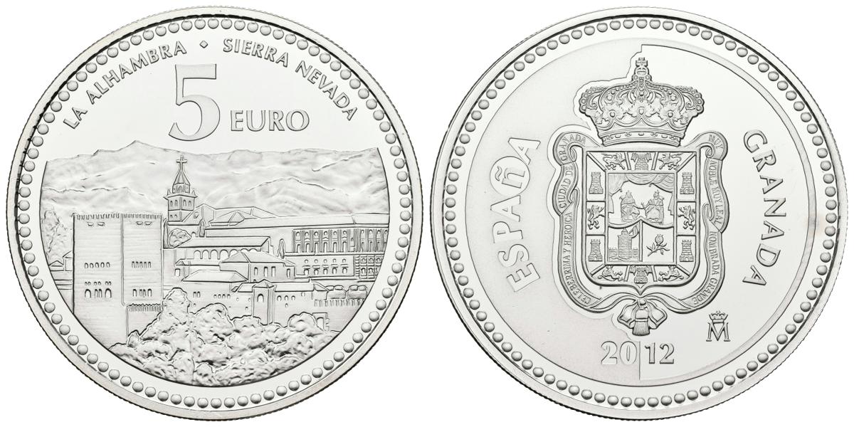 CONTEMPORANEO. 4 Reales. Valor facial de 5€. (Ar. 13.50g/33mm). Madrid. 2012. Colección Capitales de Provincia y CCAA. Granada. Proof. Incluye estuche original y certificado de autenticidad de la FNMT.