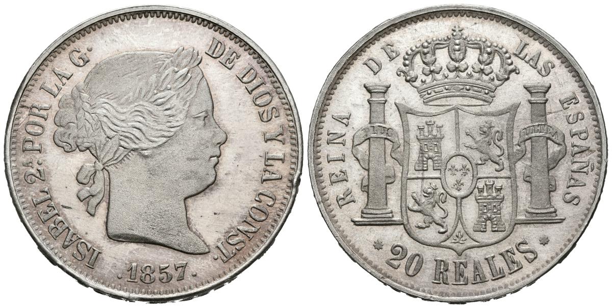 ISABEL II (1833-1868). 20 Reales. (Ar. 23,15g/37mm). 1857. 125 ANIVERSARIO BANCO BILBAO 1857-1982. SC. Golpecitos en canto.