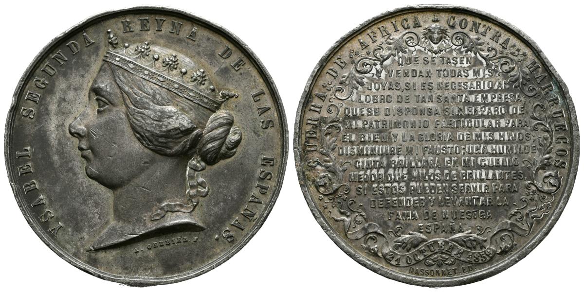 ISABEL II (1833-1868). Medalla. (Ar. 79,83g/58mm). 1859. (V.Q. 14344). Guerra con Marruecos. MBC+.