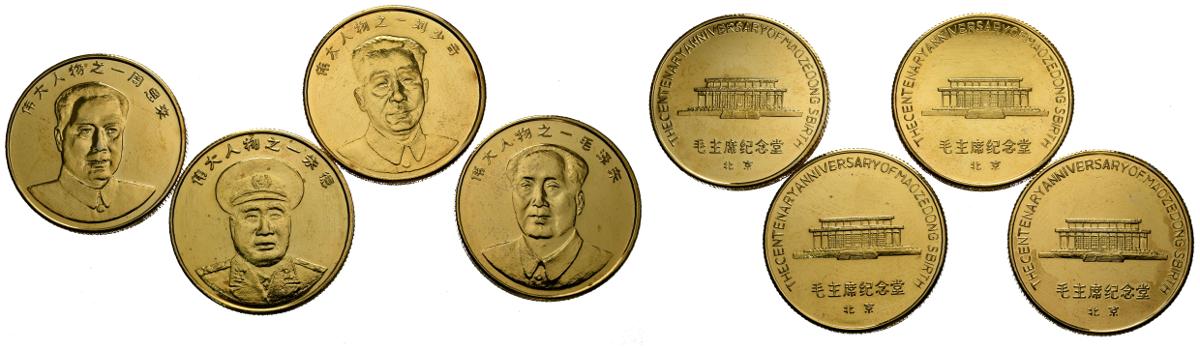 CHINA. Set de 4 medallas china celebrando el 100º aniversario del nacimiento de Mao Zedong. A EXAMINAR.