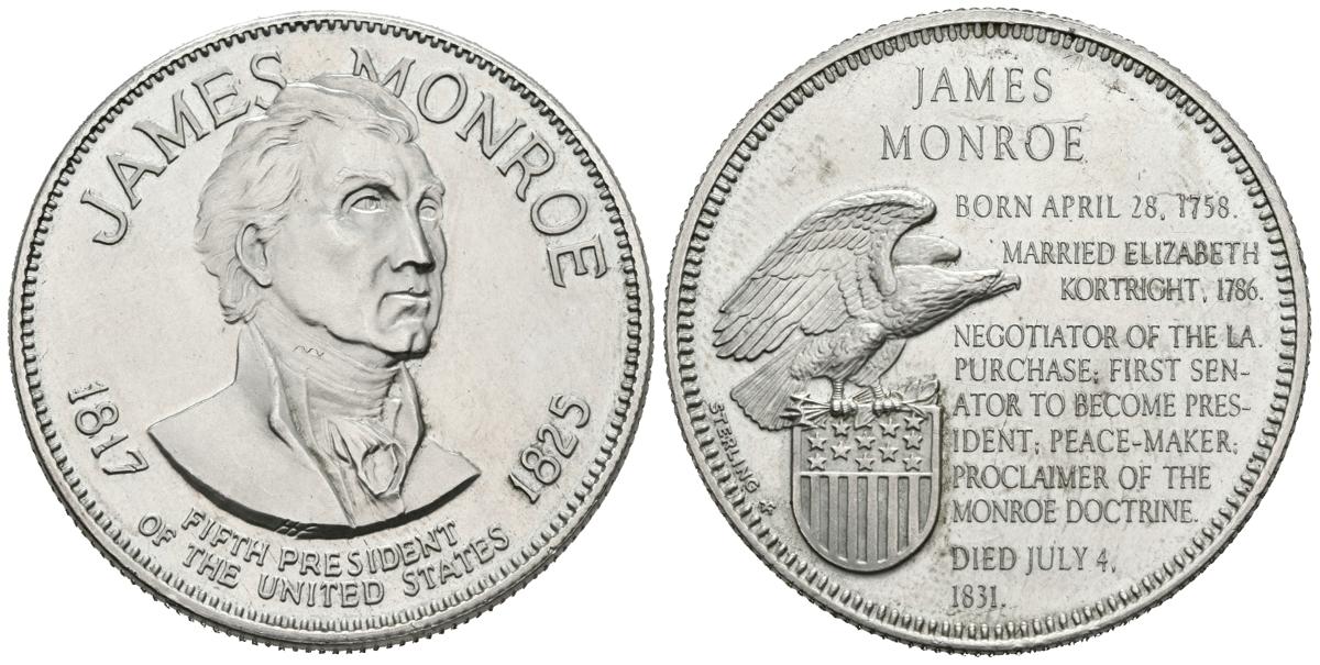ESTADOS UNIDOS DE AMÉRICA. James Monroe, 5th President of The United States (Ar. 32.80g/39mm). SD. Proof.