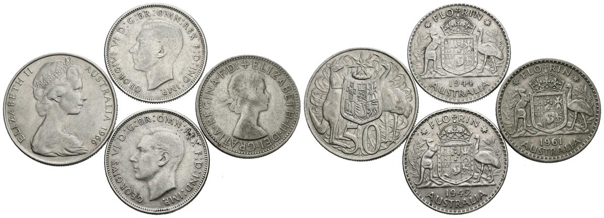 AUSTRALIA. Interesante conjunto de 4 monedas de plata de diferentes módulos y valores. Fechas comprendidas entre 1942 y 1966. Alto grado de conservación general. A EXAMINAR.