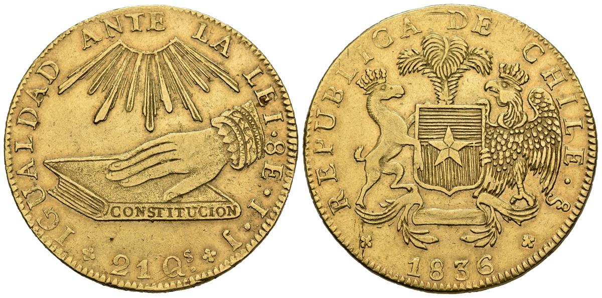 CHILE. 8 Escudos. (Au. 26,78g/36mm). 1836. Santiago IJ. (Km#93). MBC+.