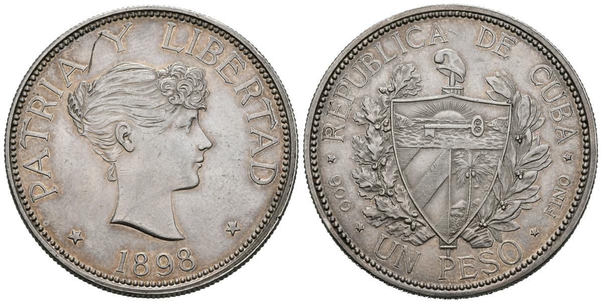 CUBA. 1 Peso (Ar. 22.56g/36mm). 1898. (Km-A8). EBC-. Raya en anverso. Muy Rara, sólo se acuñaron 1000 unidades.
