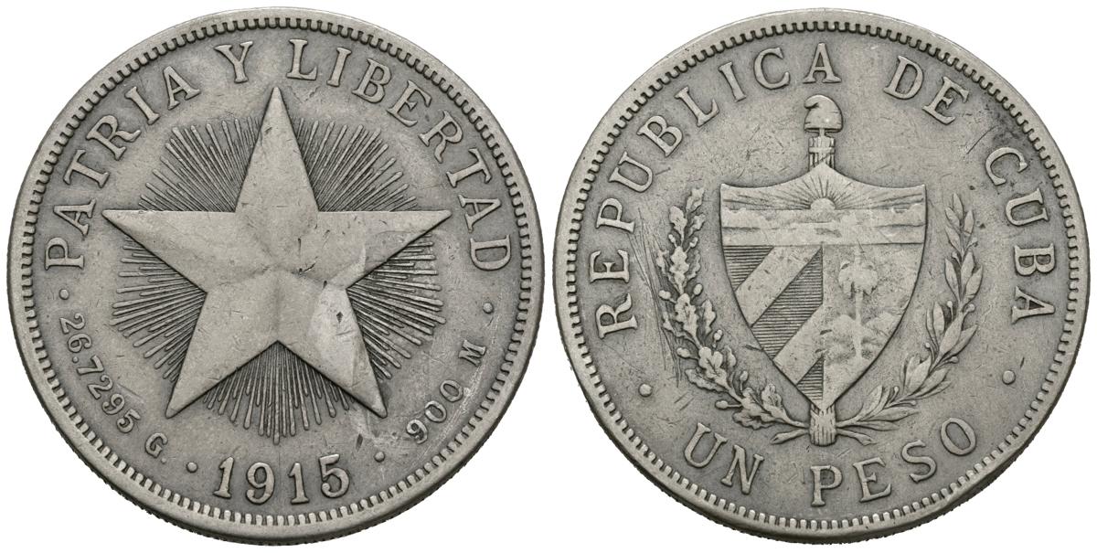 CUBA. 1 Peso (Ar. 26.35g/38mm). 1915. (Km#15). MBC. Golpecito en el canto.