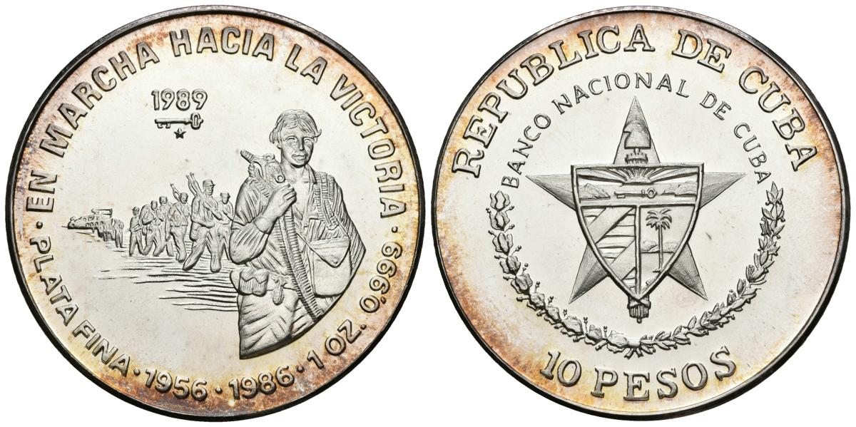 CUBA. 10 Pesos. (Ar. 31,09g/38mm). 1989. (Km#164). En Marcha hacia la Victoria. PROOF. Tirada de 2000 unidades.