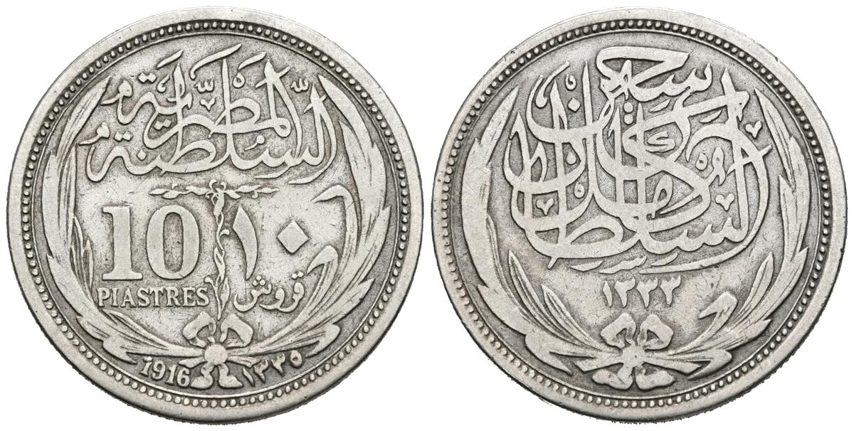 EGIPTO. 10 Piastras. (Ar. 13,35g/33mm). 1916. Hussein Kamel. (Km#319). MBC.