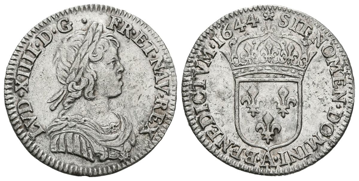 FRANCIA, Francia (1643-1715). 1/12 Ecu. (Ar. 2,25g/20mm). 1644. París A. (Gadoury 111). EBC. Precioso ejemplar.