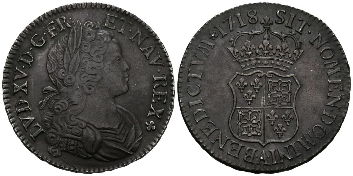FRANCIA, Luis XV (1715-1774). 1 Ecu. (Ar. 24,28g/38mm). 1718. París A. (Gadoury 318). EBC-. Escasa así. Preciosa pátina oscura.