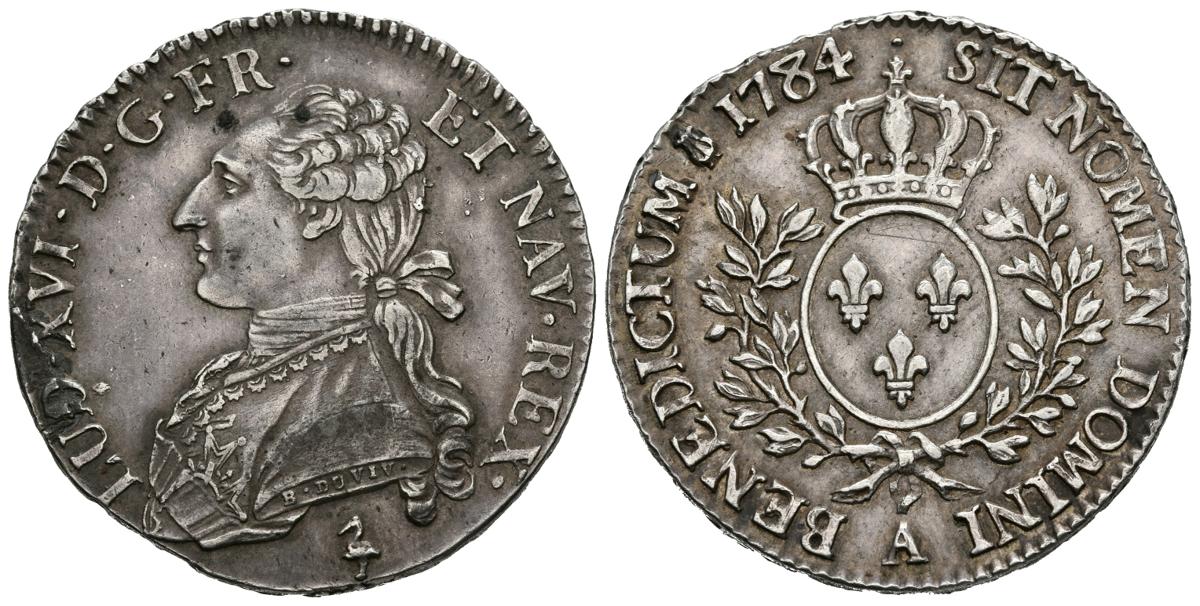 FRANCIA, Luis XVI (1774-1792). 1/2 Ecu. (Ar. 14,66g/33mm). 1784. París A. (Gadoury 355). Garza. MBC+. Puntos de óxido en anverso. Bonita pátina.