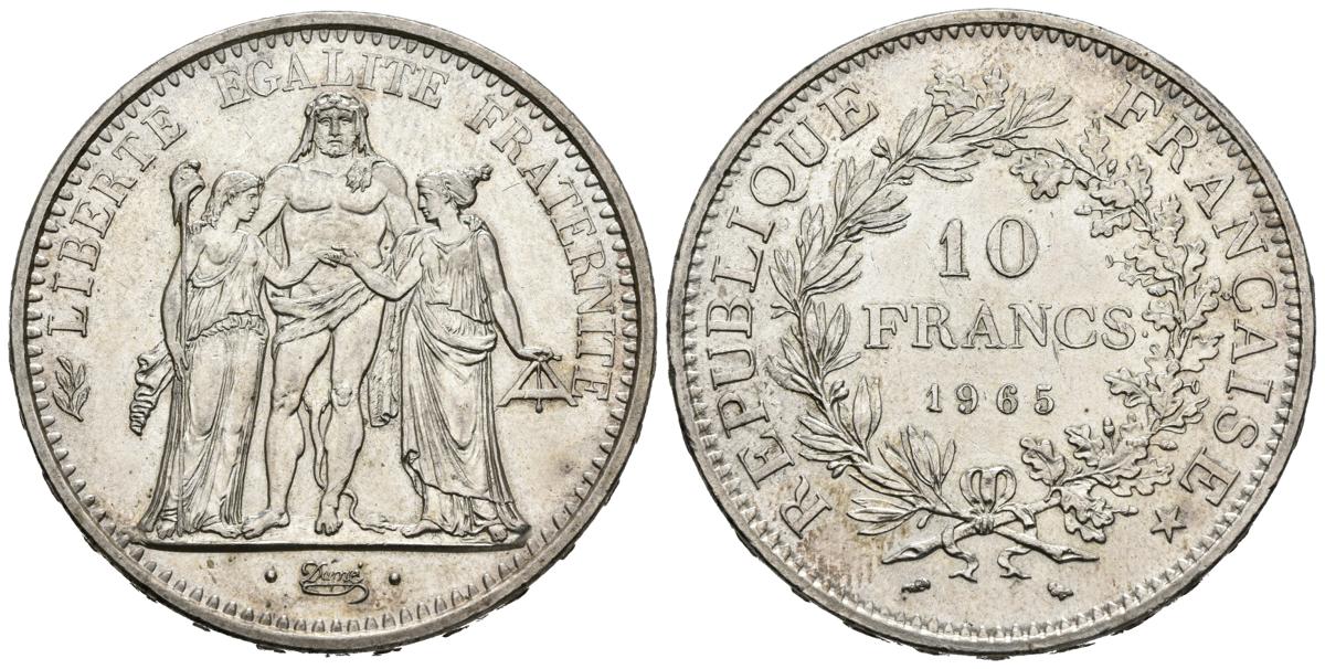 FRANCIA. 10 Francs. (Ar. 25,01g/37mm). 1965. (Km#932). EBC.