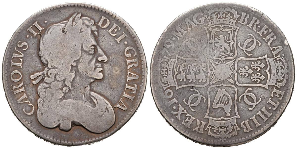 REINO UNIDO. 1 Crown (Ar. 29,28g/36mm). 1679.Carolus II. (Km#435). BC+.