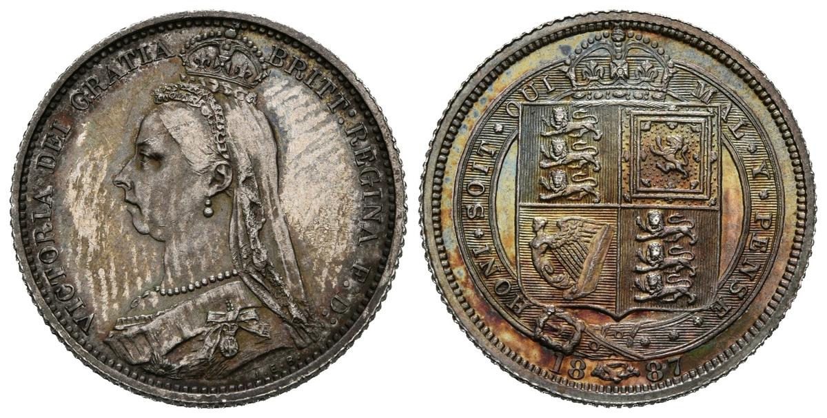 GRAN BRETAÑA, Victoria (1837-1901). Six Pence. (Ar. 2,82g/19mm). 1887. Londres. (Km#759). SC. Brillo original y pátina irisada.