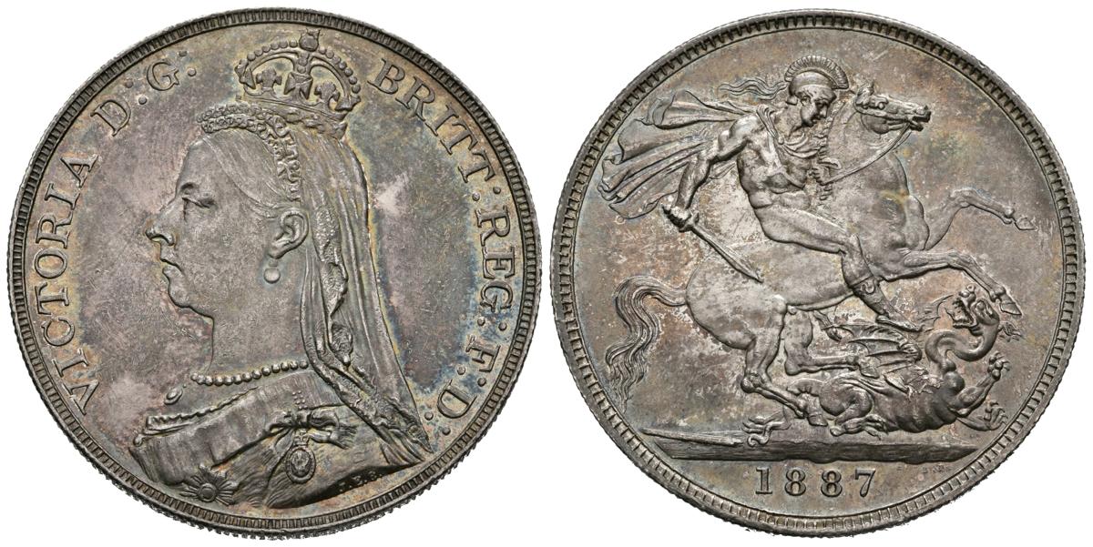 Gran Bretaña, Victoria (1837-1901). Corona. (Ar. 28,37g/38mm). 1887. Londres. (Km#765). SC. Brillo original y pátina irisada.