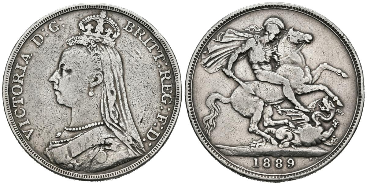 GRAN BRETAÑA. 1 Crown. (Ar. 27,92g/38mm). 1889. Reina Victoria. (Km#765). MBC. Bonito tono oscuro.