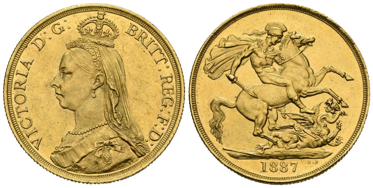 GRAN BRETAÑA, Victoria (1837-1901). 2 Libras. (Au. 16,00g/29mm). 1887. (Km#768). SC. Restos de brillo original.