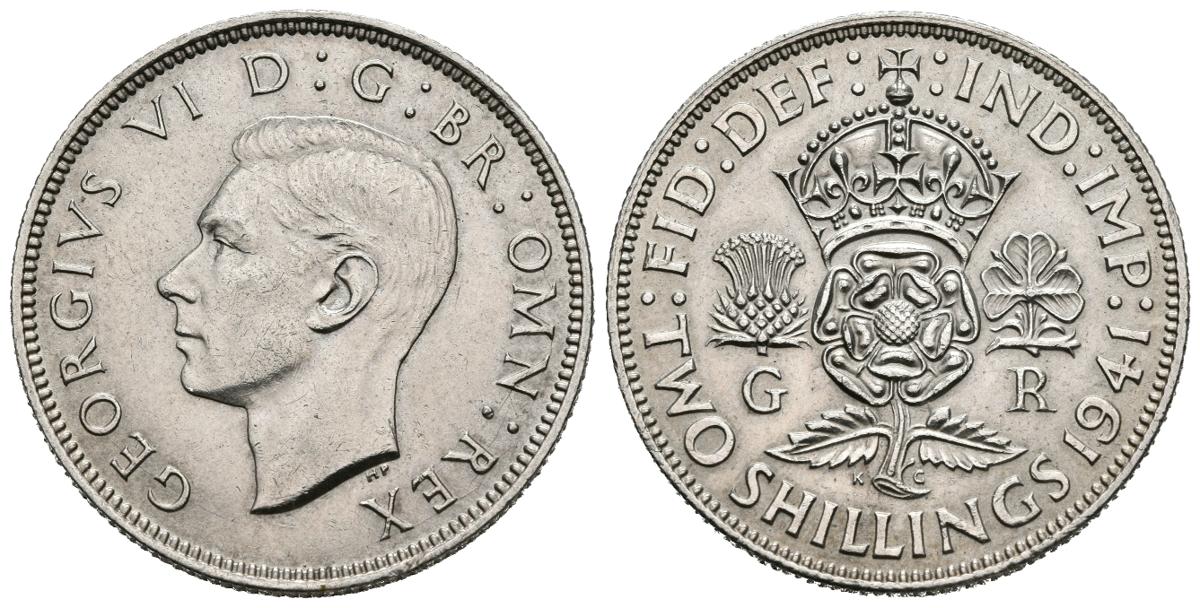 GRAN BRETAÑA.2 Shillings. (Ar. 11,25g/28mm). 1941. Jorge VI. (Km#855). SC.