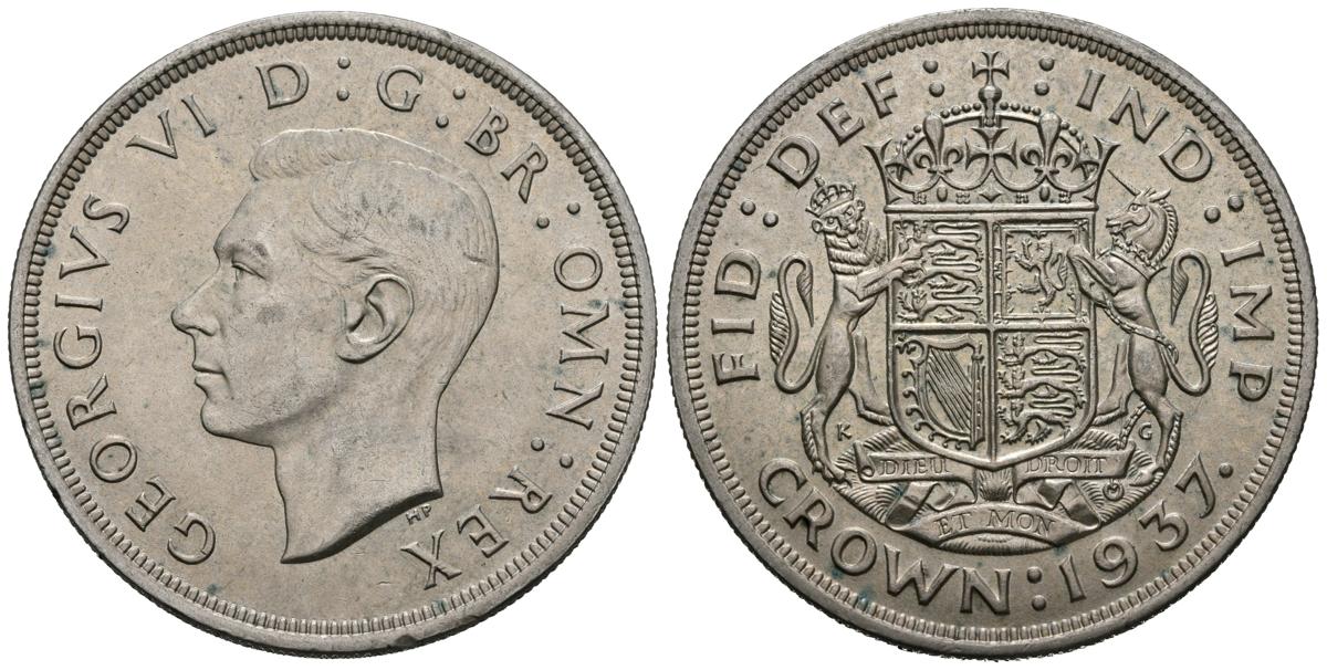 REINO UNIDO. 1 CROWN (Ar. 28,22g/38mm). 1937. Jorge VI. (Km#857). EBC.
