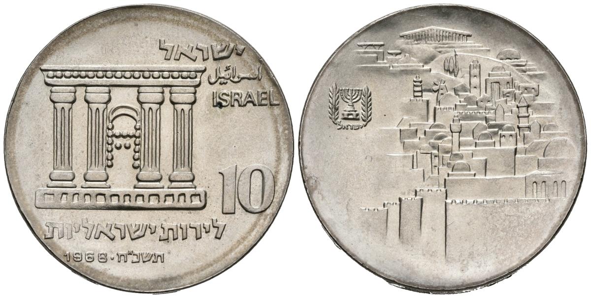 ISRAEL. 10 Lirot. (Ar. 25,92g/37mm). 1968. (Km#51). SC. Rayitas de limpieza.