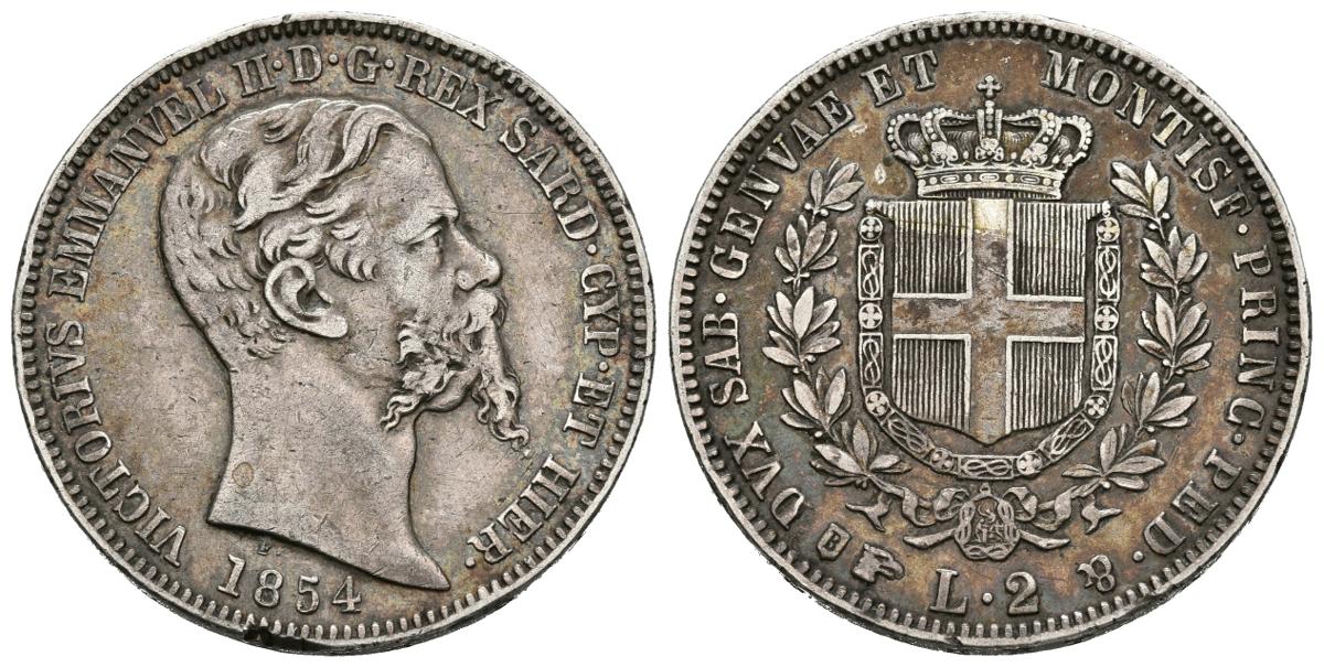 ITALIA, Victor Enmanuel II (1861-1878). 2 Liras. (Ar. 9,94g/27mm). 1854. Turín. (Pagani 397). MBC+. Bonito y escaso ejemplar.