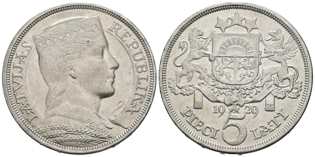 LETONIA. 5 Lati. (Ar. 24,90g/37mm). 1929. (Km#9). EBC+.