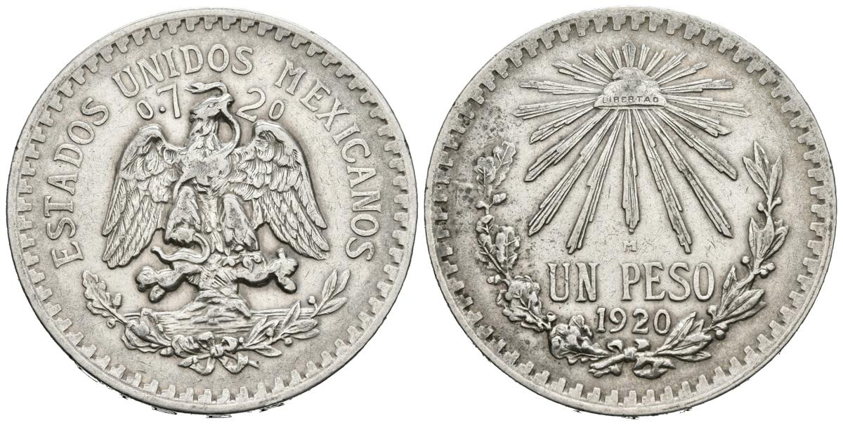 MEXICO. 1 Peso. (Ar. 16,57g/34mm). 1920. (Km#455). EBC-.