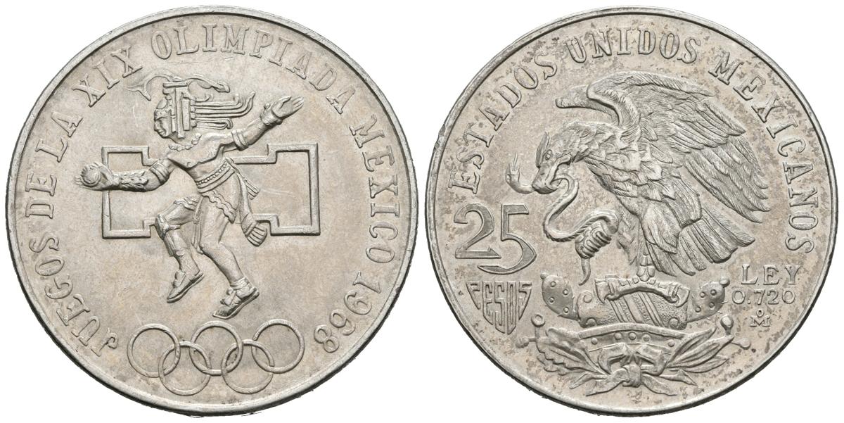 MEXICO. 25 Pesos. (Ar. 22,57g/38mm). 1968. Juegos Olímpicos MEXICO´68. (Km#468). EBC.