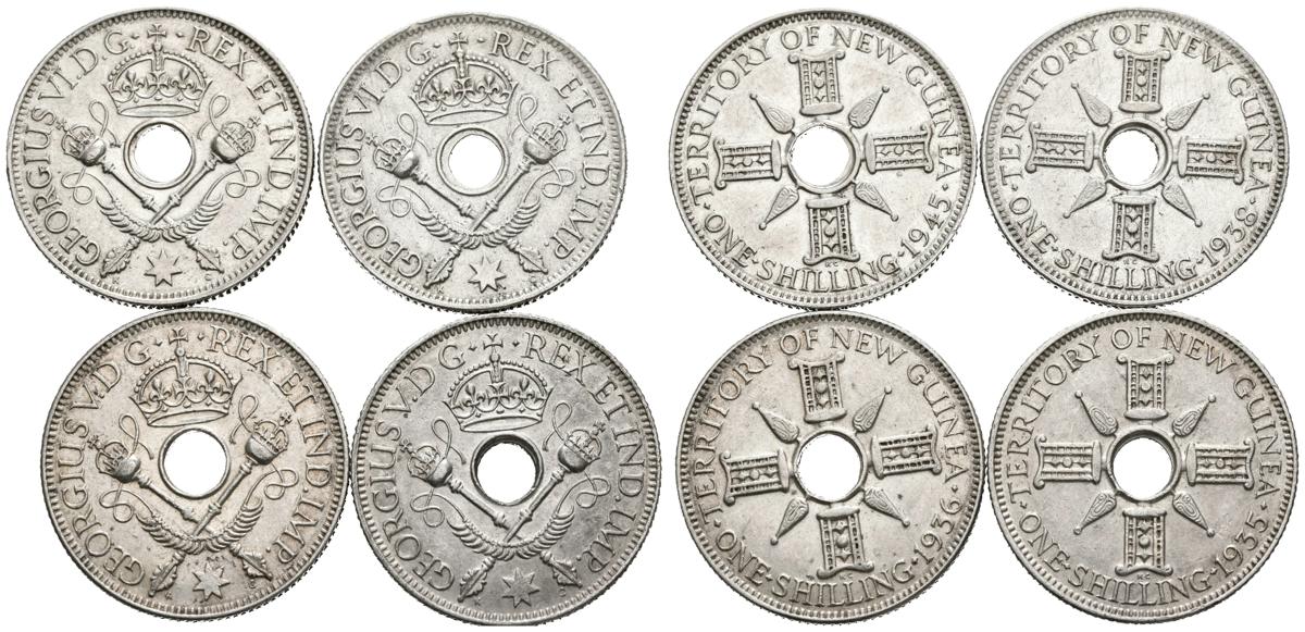 NUEVA GUINEA. Serie completa de 4 Shilling de plata (años 1935, 1936, 1945 y 1948). Alto grado de conservación general. A EXAMINAR.
