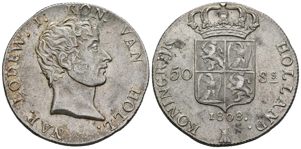 PAISES BAJOS, Luis Napoleón (1806-1810). 50 Stuivers (Ar. 26,15g/36mm). 1808. Utrecht. (Davenport 228). EBC+. Bonito ejemplar escaso en esta calidad.