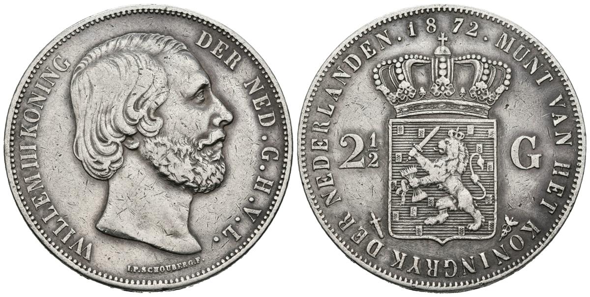 PAÍSES BAJOS. 2 1/2 Gulden (Ar. 24.87g/38mm). 1872. Willem II. (Km#82). MBC.