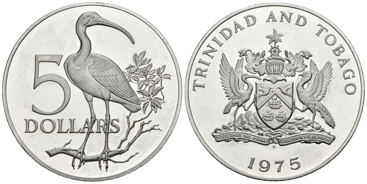 TRINIDAD Y TOBAGO. 5 Dollars. (Ar. 29,52g/40mm). 1975. (Km#8). PROOF.