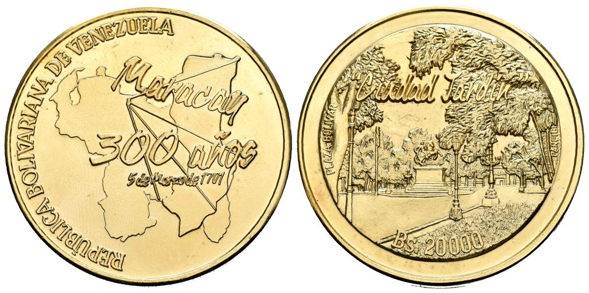 REPUBLICA BOLIVARIANA DE VENEZUELA. 20000 Bolívares (Ae.-dorado. 58,89g/49mm). 2001. 300 Aniversario del Puerto de Maracay. SC.