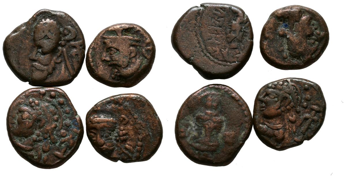 REINO DE ELYMAIS. Conjunto formado por 4 Hemidracmas de bronce acuñados entre principios del siglo II y siglo III d.C. Reinados de Orodes V y Phraates. Diferentes estados de conservación. A EXAMINAR.