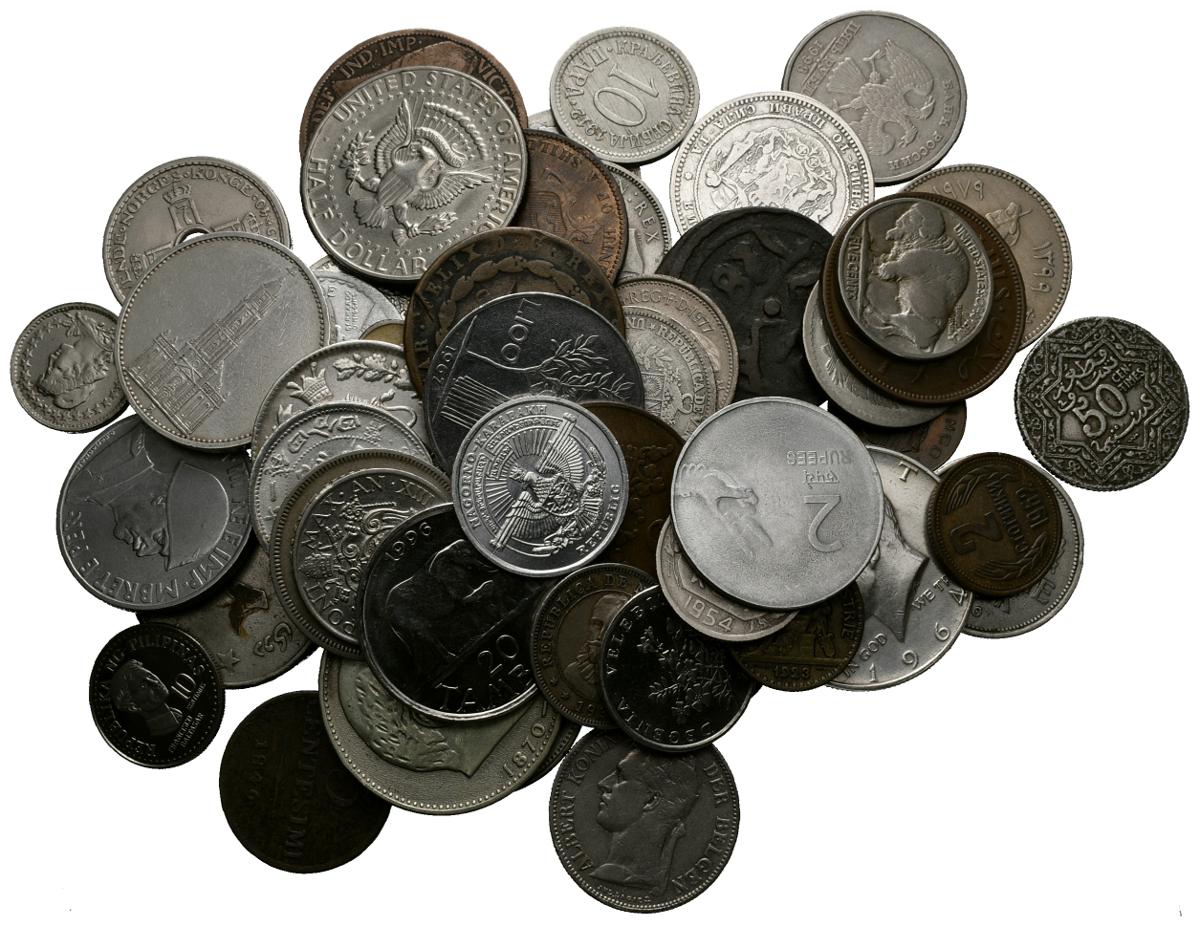MONEDAS EXTRANJERAS. Interesante conjunto de 71 monedas mundiales de los siglos XIX y XX de diferentes módulos y materiales, incluyendo varias piezas de plata. Diferentes estados de conservación. A EXAMINAR.