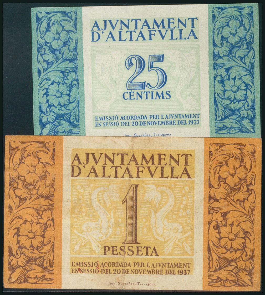 ALTAFULLA (TARRAGONA). 25 Céntimos y 50 Céntimos. 20 de Noviembre de 1937. (González: 6241/42). Inusual serie completa. EBC.