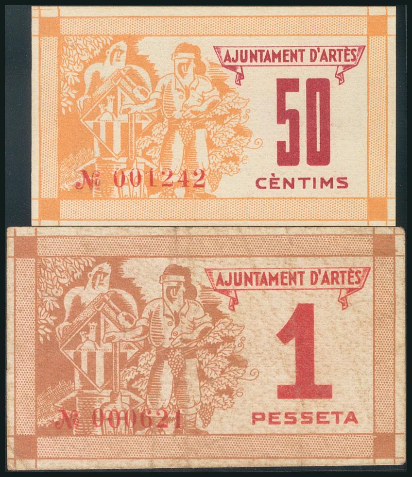 ARTES (BARCELONA). 50 Céntimos y 1 Peseta. (1938ca). (González: 6418/19). EBC/MBC.