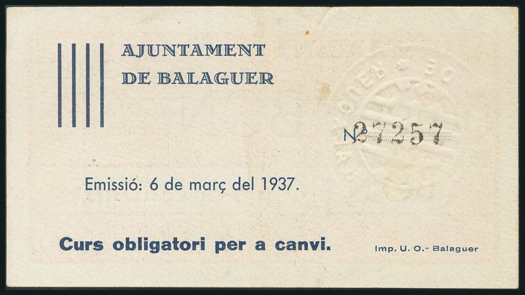 BALAGUER (LERIDA). 50 Céntimos. 6 de Marzo de 1937. (González: 6484). EBC+.
