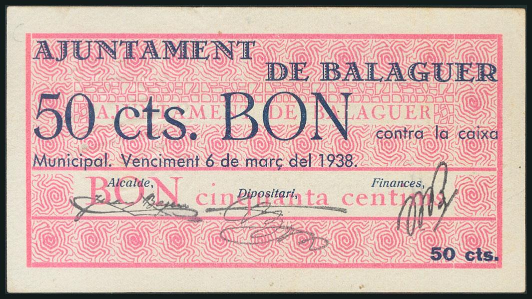BALAGUER (LERIDA). 50 Céntimos. 6 de Marzo de 1937. (González: 6484). EBC+.