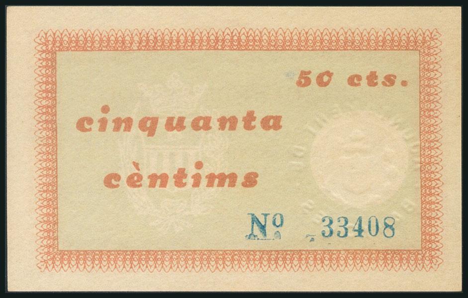 BANYOLES (GERONA). 50 Céntimos. 1937. Serie A. (González: 6505). Inusual en esta conservación. SC.
