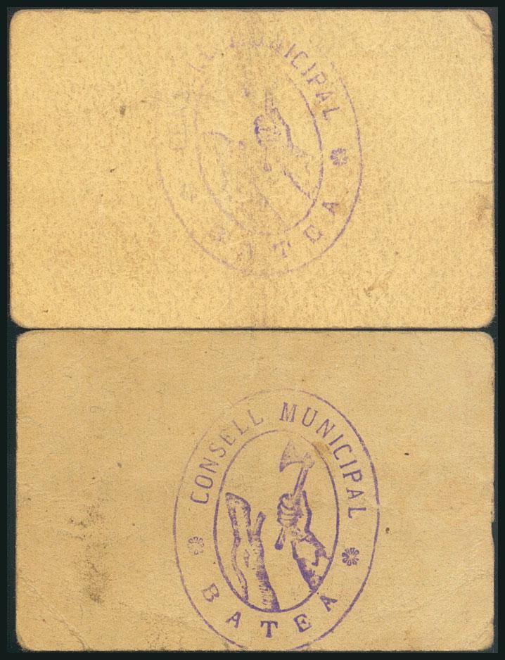 BATEA (TARRAGONA). 50 Céntimos y 1 Peseta. (1937ca). (González: 6914, 6915). Raros. MBC.